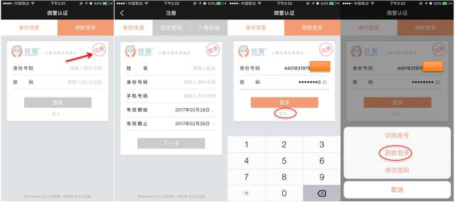2.下载完成后,如果是代办人,需要在微警认证进行首次注册。(需要录入姓名、身份证号码、身份证有效期、联系手机等信息进行注册,并成功登录微警认证程序。)注册过的,直接登录。